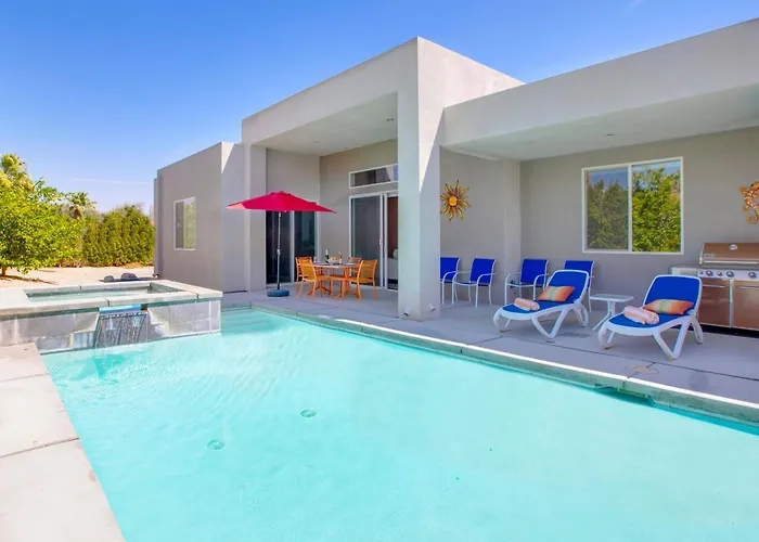 Willa Sun Haven Escape By Acme House Company Palm Springs lokalizuje się w małej odległości od drzew palmowych i obejmuje basen, jacuzzi, aby zwiększyć relaks gości. Willa oferuje parking oraz patio z widokiem na górę.